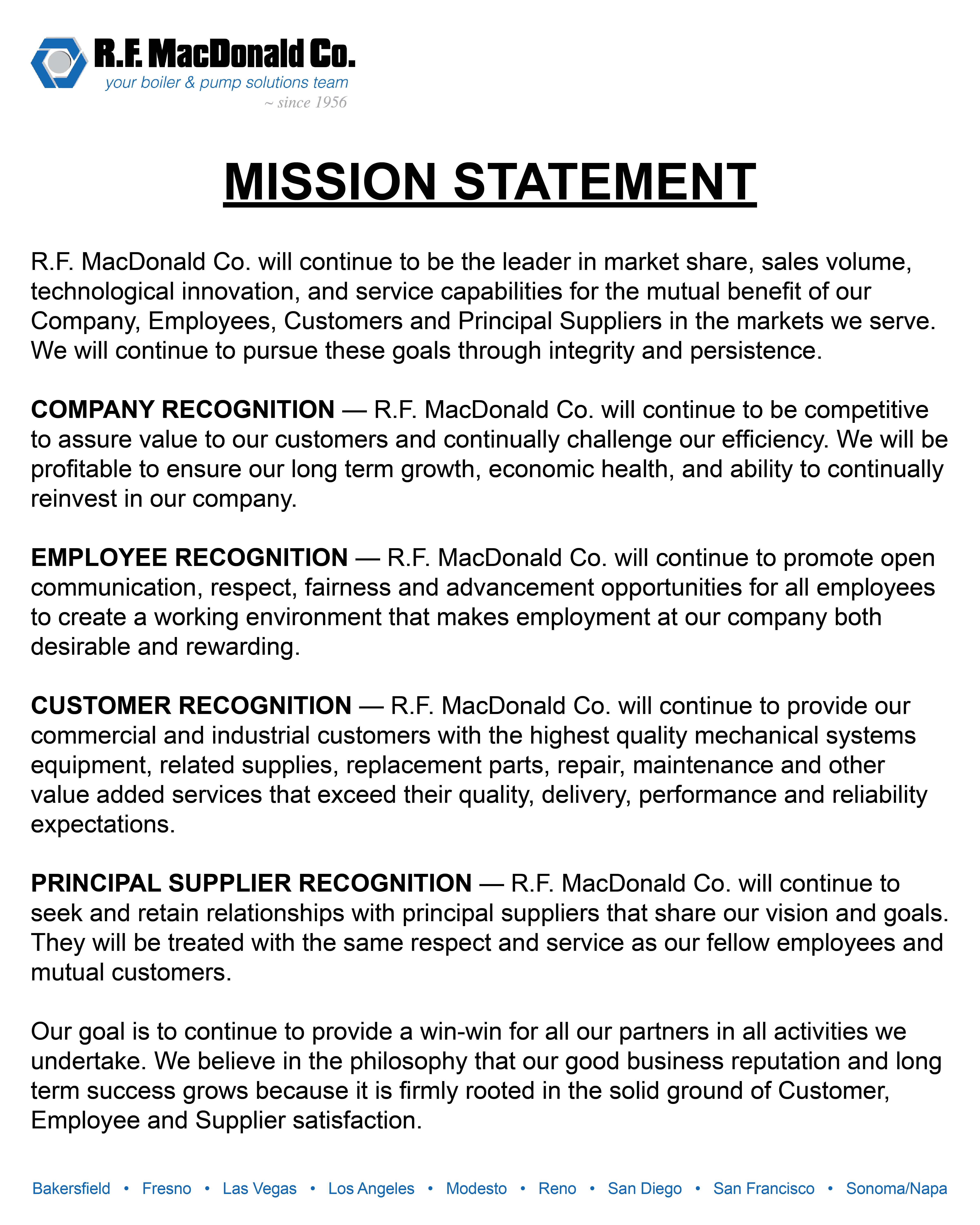 R.F. MacDonald Co. has been in business since 1956. We service and sell boilers, pumps and accessories for commercial and industrial applications. Our employees are full-time mechanical engineers, sales engineers, parts experts and field service personnel. Allow us to assist you in your equipment selections, installation planning, layout, permitting and project supervision.